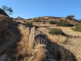 Paysage à Hyparrhenia hirta (=Gramen dactylon siculum spica gemina ab eodem exortu), Ios, octobre 2022.