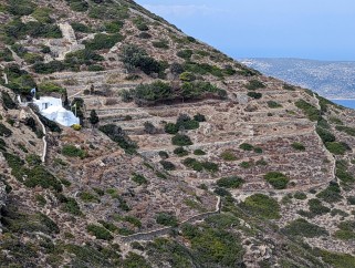 Saint-Georges Valsamitis, Amorgos, octobre 2022. Saint-George Balsami (…) est à quatre milles du village, à gauche du port de l’Ouest, tout auprès d’un verger d’arbres fruitiers en terrasse... TOURNEFORT 1717