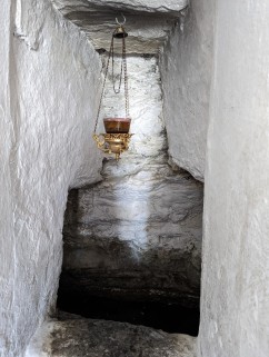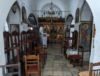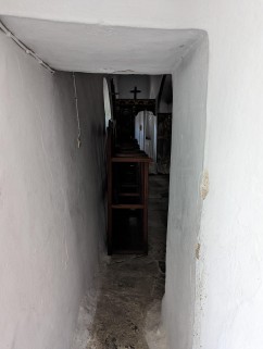 Saint-Georges Valsamitis, Amorgos, octobre 2022. Les nefs des côtés sont si étroites, qu’il n’y saurait passer qu’une personne de front... TOURNEFORT 1717