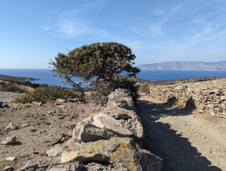 Pistacia lentiscus = Lentiscus vulgaris, Schinoussa, octobre 2023. Les Grecs ne doutent pas que Skinosa n'ait pris son nom des Lentisques dont elle est couverte, quoi que cet arbre ne soit pas plus commun dans Skinosa que dans les îles voisines (TOURNEFORT 1717)