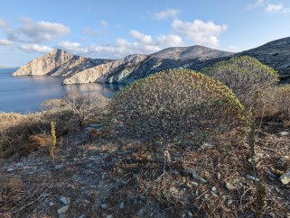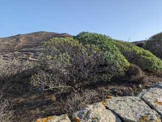 Euphorbia dendroides L., Folegandros, octobre 2023. Toute l’île est couverte de Tithymalus arboreus P. Alp.