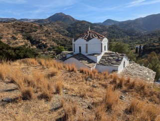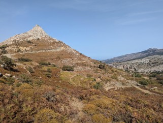 Nicaria est fort étroite, et traversée dans sa longueur par une chaîne de montagnes. Ikaria, Koskina Castro, octobre 2024.