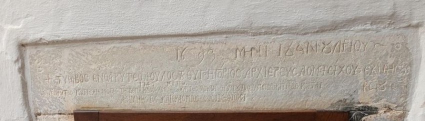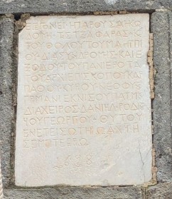 Couvent de Saint Jean, Patmos, avril 2025. Inscription de 1693, que Tournefort a pu voir.