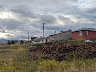 On n’y voit ni arbres ni buissons, et l’on n’y brûle communément que de la bouse de vache dont on fait des mottes. Briques de bouse séchée, environs d'Erzurum, juillet 2025.