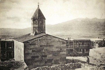 Le comble de ce dôme aboutit en pointe, ou en cône gauderonné comme un parapluie à demi ouvert. Monastère rouge : Église de la Sainte-Mère Dieu et cour intérieure (CPA, M.P.). Environs de Tortum.