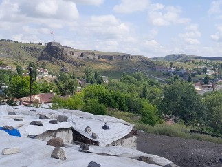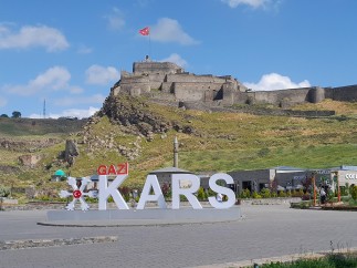 Le château de Cars est fort escarpé sur un rocher tout au haut de la ville. Château de Kars, juillet 2025. Photo Michel-Ange Bouchet.
