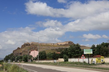 Au milieu de la plaine d'Assancalé s'élève une roche horriblement escarpée, sur laquelle on a bâti la ville et une forteresse. Pasinler (Assamcalé), vu de l'Ouest, juillet 2025. Photo Frédéric Tintilier.