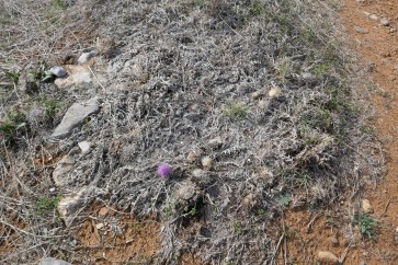 Le chemin est pavé pour ainsi dire de la plante nommée Ixia par Théophraste et Chamaeleon blanc par ses interprètes. Malia, Crète, octobre 2018.