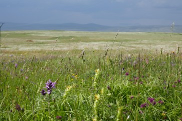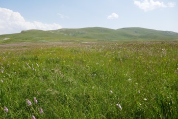Nous campâmes sur les 8 heures dans une belle et grande prairie. Paysage aux environs du lac d'Arpi, juillet 2019.