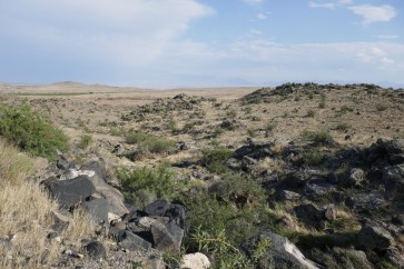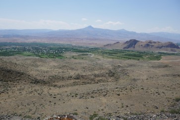 Nos voituriers nous firent marcher dans des campagnes sèches, pierreuses, incultes, désagréables... Vue de la plaine de l'Araxe, à la frontière turque, depuis Ervandachat, juillet 2019.