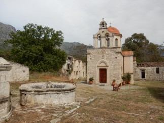 Comme nos recherches ne se bornaient pas à la seule histoire naturelle, nous partîmes d’Asomatos le 5 juillet, pour aller voir les ruines de Gortyne, à 24 milles de ce couvent. On passa par Apodoulo, village à 6 milles de là ; et côtoyant toujours le mont Ida, au travers des montagnes sèches, où il ne croît que de la Pimprenelle épineuse, nous allâmes coucher fort près de la mer du sud, à la Trinité [Aghia Triada], autre village, à 6 milles et demi d’Apodoulos. " TOURNEFORT 1717.