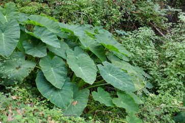 Nous n'avons pas trouvé de Colocasia dans les ruisseaux des alentours de Moni Asomaton, mais il est parfois naturalisé en Crète, comme ici, à Argiroupolis.