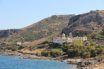 " Le 27 juillet, nous allâmes au couvent de Cougna [moni Gonias] , tout à l’entrée du cap Spada [péninsule de Rodopou ou cap Spatha], à la vue de La Canée ; nous avions dessein de visiter ce cap avec attention, mais il fallut partir sur le champ, parce que le consul de La Canée nous fit avertir par un exprès que patron de barque de Provence devait mettre à la voile pour Négrepont, et qu’il l’avait engagé de nous débarquer à Milo. L’occasion nous parut favorable pour aller dans l’Archipel, cependant le vent cessa le lendemain, et la bonasse nous donna de tout le temps de faire nos ballots à La Canée, et de mettre par écrit les réflexions que j’avais faites à loisir dans cette île." TOURNEFORT 1717.
