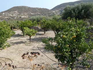 Vergers d'Agia Triada, Milos, octobre 2021. Les orangers et les cèdres y seraient parfaitement beaux si l’on avait l’industrie de les cultiver.