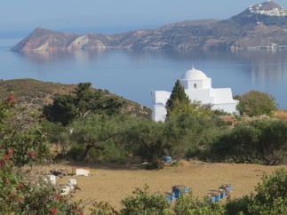 Avant que de quitter Milo, nous montâmes au haut de saint Hélie, montagne la plus élevée du pays, pour avoir le plaisir de considérer les îles voisines : c’est un des plus beaux coups d’oeil qu’il y ait dans l’archipel ; le jour était parfaitement beau, et nous laissa voir une infinité d’îles voisines qui brillent dans la mer, pour me servir de l’expression d’Horace." TOURNEFORT 1717.