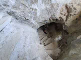La chapelle de Cacoperata est une caverne où l’on ne peut entrer que par une espèce de trappe taillée dans le roc. Kakoperato, avril 2022. Photo Frédéric Tintilier.