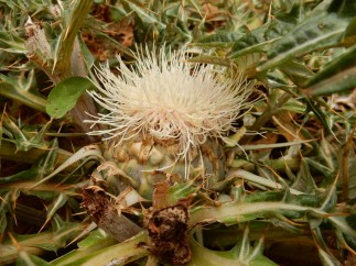 Cynara cornigera Lindely, presqu'île de Rodopou, Crète, avril 2018 ("à grande fleur blanche").