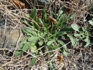 La tige s’élève à un pied ou un pied et demi, droite, cassante, velue, rayée vert pâle, pleine de moelle, accompagnée au bas de feuilles âpres, velues, du goût de la scorzonère commune, longues d’un empan, larges de 3 ou 4 pouces, découpées quelquefois comme celles de la Jacea lutea, capite spinoso [=Centaurea collina L.], quelquefois comme celles du Coronopus maritimus Massiliensis [=Plantago coronopus L.]. Les feuilles qui accompagnent la tige sont plus petites, et même vers le haut elles ne sont que dentées sur les côtés, vert pâle, relevées d’une grosse côte blanche ainsi que les inférieures. Cette tige vers le milieu se divise en longues branches presque nues dont chacune soutient une fleur de 2 pouces de diamètre, jaune, semblable à cele de la scorzonère commune. Le calice est une poire longue d’un pouce sur 7 ou 8 lignes d’épaisseur, composée de plusieurs écailles vert pâle ou rouges vers le milieu, mais blanches membraneuses sur les bords. Les demi fleurons sont longs d’environ 20 lignes, fistuleux dans le calice. Ils débordent d’un pouce, jaune pâle, larges de 2 lignes et demie, équarris et dentés à la pointe. De la fistule s’élève une gaine longue de 3 lignes, qui se déchire facilement en frange et qui laisse échapper une filet jaune fourchu dont les brins sont recoquillés en bas. Chaque demi fleuron porte sur un embryon de graine blanc, long d’une ligne, qui devient une semence grisâtre, velue, épaisse de près d’une ligne, cannelée, longue de 2 lignes, pointue par le bas, pleine d’une chair blanche en dedans. Cette graine est un peu courbe, garnie d’une aigrette longue de 9 ou 10 lignes, blanc sale, tirant sur le roux, un peu rude, cassante, composée d’une douzaine de brins. "