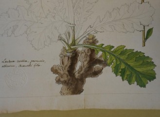 Lactuca Cretica perennis altissima Acanthi folio. Aubriet (Claude). Ms 78., détail.
