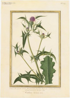 Cnicus albis maculis notatus, flore purpureo I R Herb 450 / Carduus albis maculis notatus, exoticus, C B Pin. 381, Anonyme. Collection du MNHN-Paris - Direction des bibliothèques et de la documentation