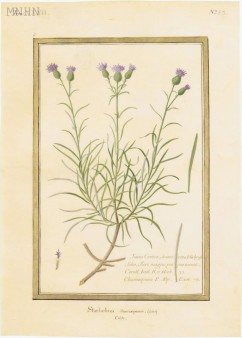 Jacea Cretica, frutescens, elichrysi folio, flore magno, purpurascente, Coroll I R Herb 32 / Chamaepeuce, P Alp Exot. Anonyme. Collection du MNHN-Paris - Direction des bibliothèques et de la documentation