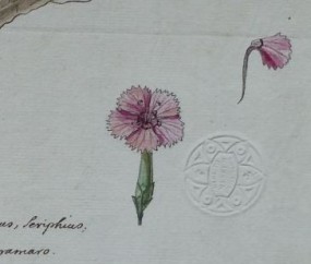 Caryophyllus Seriphius, arboreus, Leucoii folio, peramaro. Aubriet (Claude), détail. Ms 78. Collection du MNHN-Paris - Direction des bibliothèques et de la documentation
