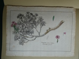 " We did not find on the rock of the cave the rare Dictam of Crete, which Tournefort saw, but the tree pink, one of the most beautiful plants of this island. [It] far excels when in flower all other pinks. Conceive a dwarf tree, with a stem as thick as a man’s arm, and the crown of which is formed by a circle of thick branches, ending in tufts of pinks, which blossom during six months in the year (…). The discovery of this plant was much more interesting to me than a narrow dirty cave, dangerous both to the guide and the traveller. " (SIEBER 1823)