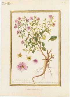 Cistus ladanifera, Cretica, flore purpureo, Coroll I R Herb 19 / Ladanum creticum, P Alp Exot, 88, Aubriet (Claude). Collection du MNHN-Paris - Direction des bibliothèques et de la documentation