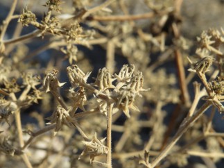 Echinophora tenuifolia L. subsp. sibthorpiana (Guss.) Tutin, Milos, octobre 2021. Photo Jean-Pierre Brizard. Les pédicules des autres fleurs de cette ombelle ne tombent pas, mais se rapprochant de la capsule qui est à leur centre, ils se durcissent et l’embrassent.