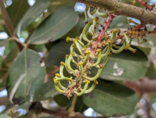 Ceratonia siliqua L., Irakliá, octobre 2023, fleurs femelles.