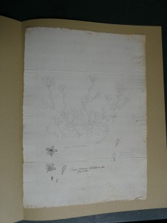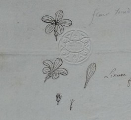 Linum Creticum, Globulariae folio, flore luteo. Aubriet (Claude). Ms 78., détail.