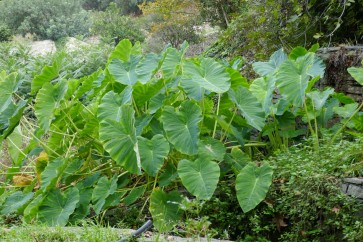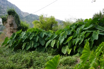 Colocasia esculenta (L.) Schott., naturalisé à Argiroupolis, Crète, octobre 2018.