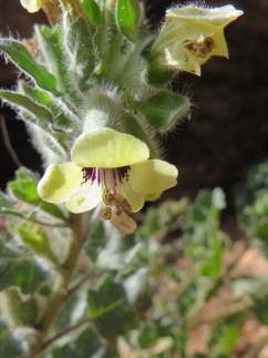 Hyoscyamus albus L., forme à gorge sombre, monastère de Katolico, Crète, avril 2018. Photo Jean-Pierre Brizard.