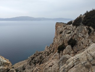 Falaises à Staehelina fruticosa (L.) L., Irakliá, octobre 2023, face à Ios.