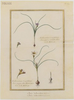 1/ Bulbocodium crocifolium, flore magno, albo, Cor I R Herb 51 2/ B crocifolium, flore parvo, violaceo, Cor I R Herb 50, Anonyme. Collection du MNHN-Paris - Direction des bibliothèques et de la documentation